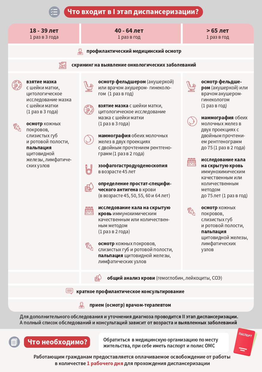 Всю достоверную информацию можно найти на сайте «Так здорово», рекомендуем. Для выхода на сайт ссылка прилагается https://www.takzdorovo.ru/profilaktika/dispanserizatsiya/
